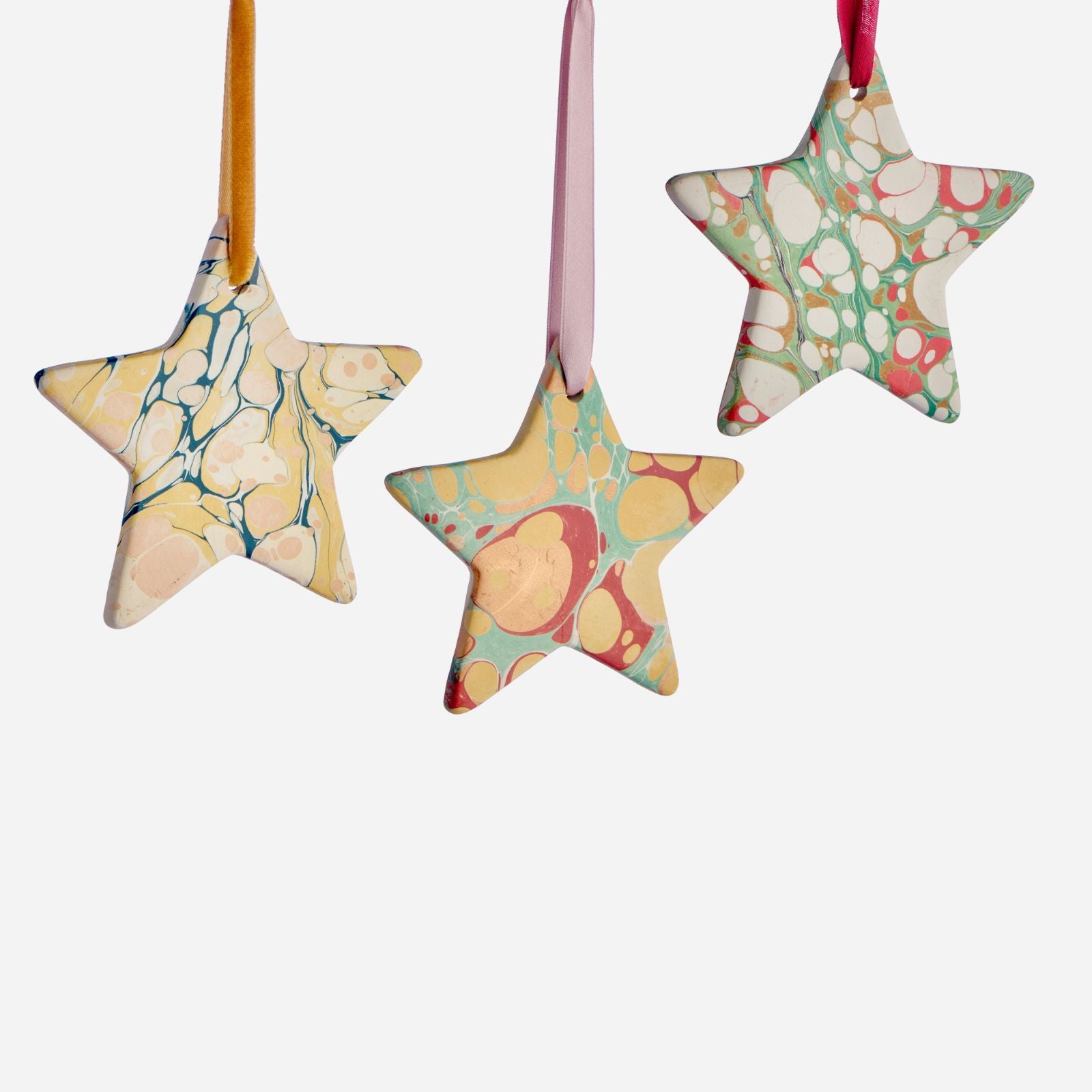 Handcrafted in Wiltshire, our charming hand-marbled ceramic star ornaments elevate any holiday decor.